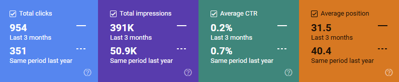 Search Console’s data also backed the search visibility improvements of BPS. Clicks grew from 351 to 954, and impressions rose from 50.9K to 391K. Average position improved from 40.4 to 31.5, showing steady upward momentum in competitive rankings.