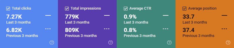 A quick win to start with – as you can see from the screenshot below, we have earned more clicks over the last three months than were earned in the three months prior. So, goal achieved!