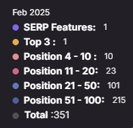 Search Console data backed this up on the visibility side. Clicks grew from 825 to nearly 4,000 in three months, and impressions scaled from 60K to over 360K. Regenesis is now holding eight top-three rankings and 41 SERP features — up from just one.