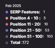 Both of the screenshots above show that, as well as the number of page one rankings, the overall number of keywords that Travel Trade Ready pages were ranking for also increased over the life of the project. Achieved!